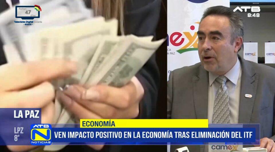 La Paz, 13 de abr 2026 (ATB Digital).-El gerente de la Cámara de Exportadores (CAMEX), Mario Rojas, señaló que el sector respalda la eliminación del Impuesto a las Transacciones Financieras (ITF), medida que, según afirmó, podría generar un impacto positivo en la economía y facilitar un mayor flujo de divisas.