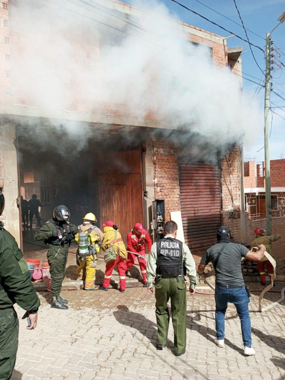 Sucre, 15 de abr 2026 (ATB Digital).- Un incendio se registró en un taller mecánico en Villa Armonía, en la ciudad de Sucre, donde bomberos y personal de emergencias trabajan intensamente para sofocar las llamas; el hecho dejó al menos cinco personas con quemaduras leves.