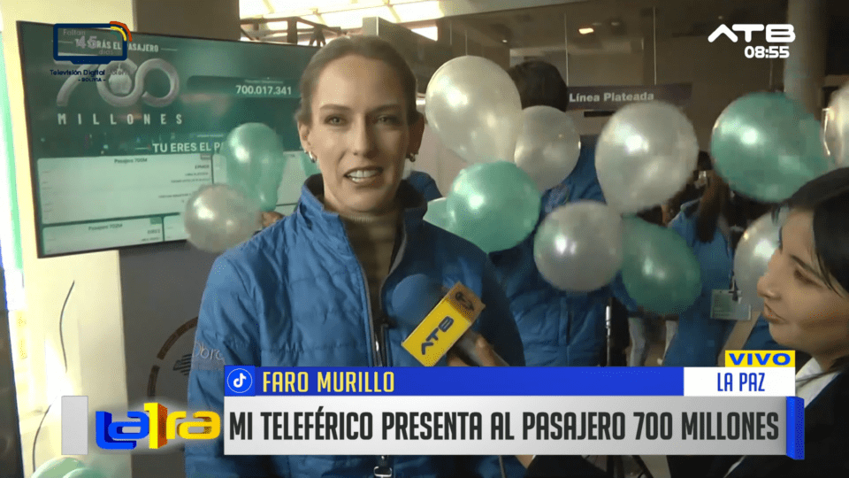 La Paz, 15 de abr 2026 (ATB Digital).- Mi Teleférico alcanzó los 700 millones de pasajeros y anunció la premiación del usuario con este registro. Lucía Zalles, gerente de planificación, informó que el reconocimiento se realizará aproximadamente a las 13:30, en presencia de sus padres.