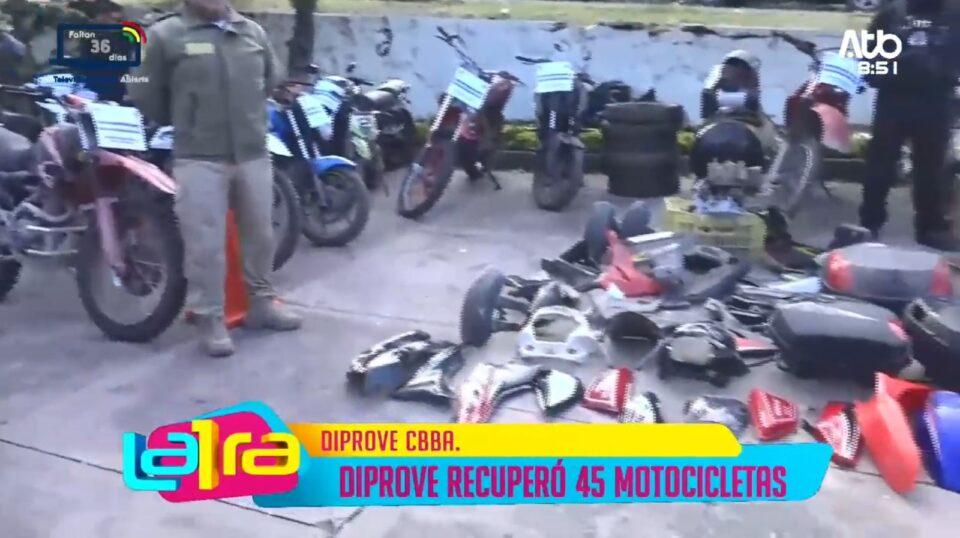Cochabamba, 24 de abr 2026 (ATB Media).- La Dirección de Prevención e Investigación de Robo de Vehículos (DIPROVE) recuperó 45 motocicletas reportadas como robadas en el municipio de Sipe Sipe, en Cochabamba.