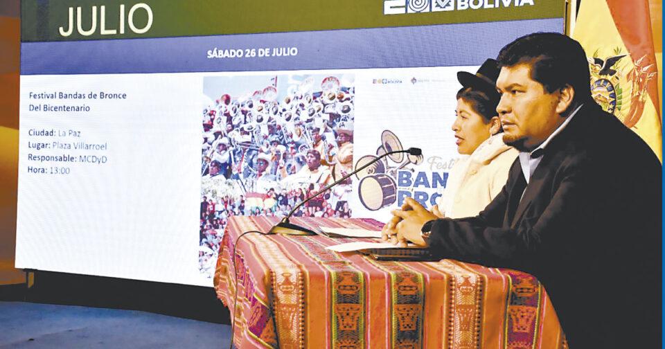En el ámbito artístico, el sábado 26 se celebrará la fase departamental del Festival de Bandas de Bronce del Bicentenario en La Paz. Bandas estudiantiles y profesionales competirán en inmediaciones de la plaza Villarroel, en la zona de Miraflores.